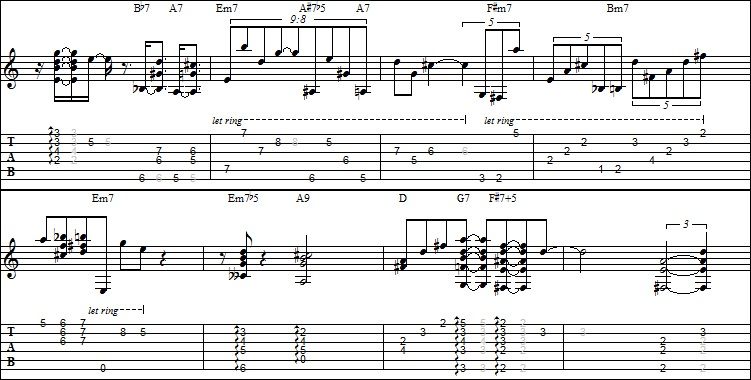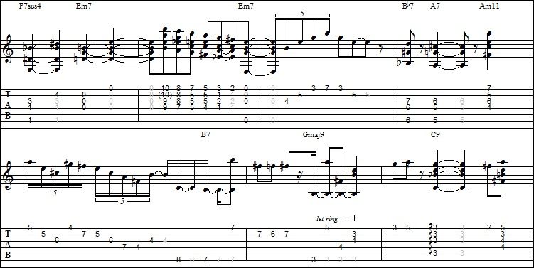 played with nylon strings.Tuning: half step down (Eb Ab C# F# Bb Eb (low to high))